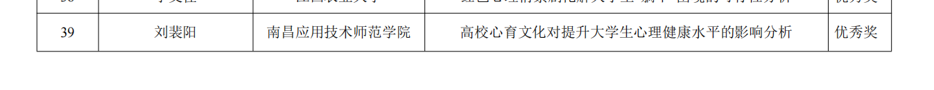刘裴阳:发表的论文《高校心育文化对提升大学生心理健康水平的影响分析》荣获“优秀奖”。