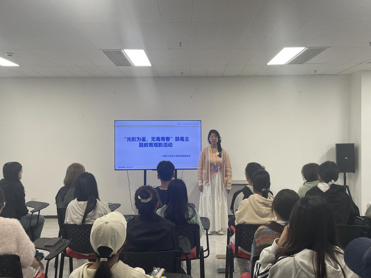 为深入推进禁毒宣传教育工作,切实增强广大青少年学生的识毒、防毒、拒毒意识和能力,营造全社会共同参与禁毒斗争的环境。2025年10月28日,学生工作处大学生自律委员会于致美楼509成功举办了“光影为鉴,无毒青春”禁毒主题教育观影活动。