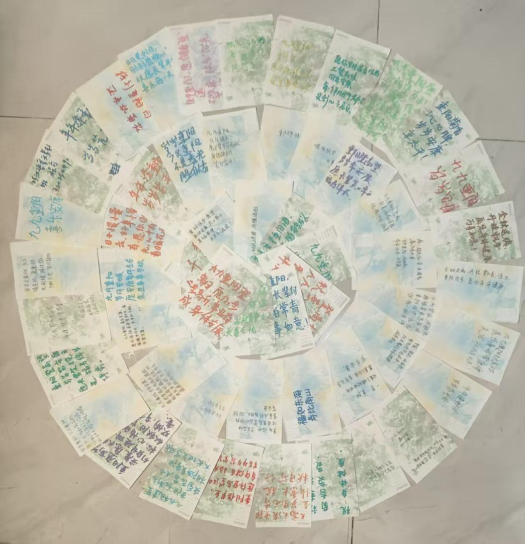 活动别出心裁地设计了“四重雅关”,取意重阳登高、步步向上的美好寓意。四关分别为“敬老寄情”“秋菊入画”“诗意重阳”与“佳节浅谈”,融祝福传递、绘画创作、诗词吟咏与习俗探讨于一体。参与者不仅在温情寄语中感悟孝亲敬老的传统美德,也在笔墨点染间描绘秋菊傲霜的雅致风骨,于诗词接龙中感受经典文化的隽永魅力,更在趣味问答中深入了解重阳节俗的文化内涵。