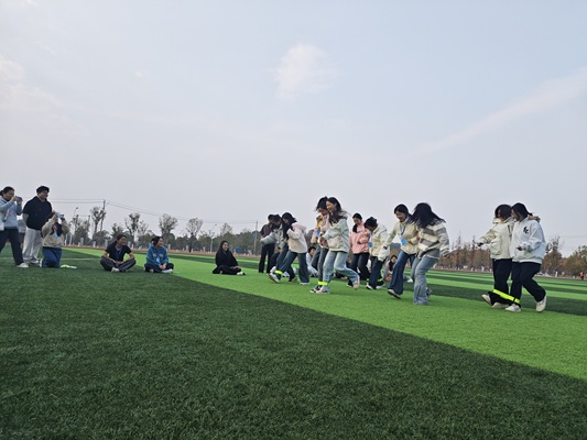 本次活动以趣味游戏为核心载体,设置了四大特色环节。“两人三足” 游戏中,搭档们默契配合、步调一致,在同步律动中拉近心与心的距离;“接力赛” 与 “接力传球” 环节则将速度与协作深度融合,选手们奋勇争先、互帮互助,充分展现了青年学子的蓬勃朝气与团队凝聚力;“贴膏药” 游戏更是将现场氛围推向高潮,追逐躲闪间的阵阵欢笑回荡在操场之上,让大家在轻松愉悦的氛围中卸下拘谨、释放压力。