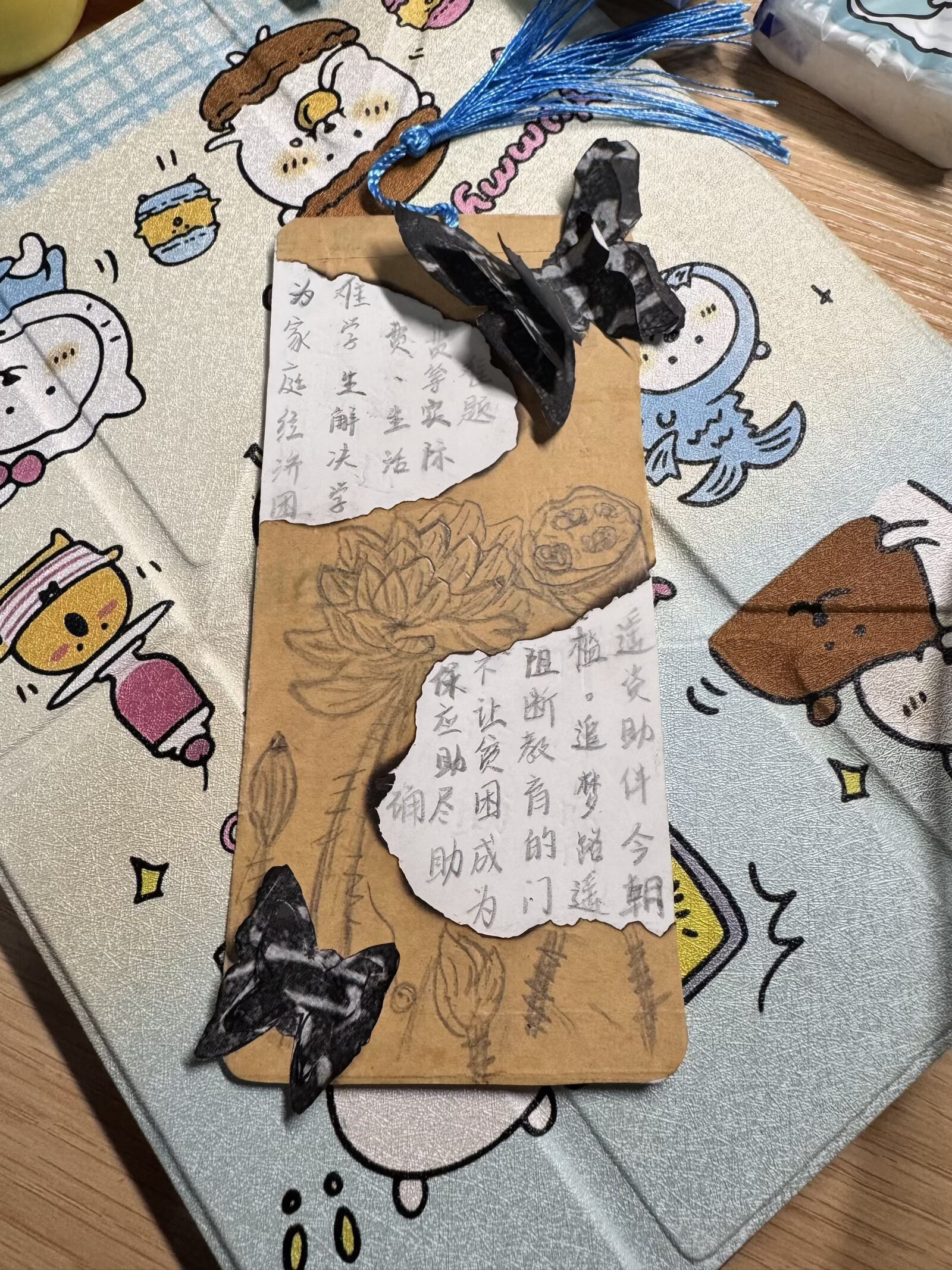 在作品征集阶段,同学们踊跃投稿,提交的作品形式多样、情感真挚。同学们积极参与书签创作,将感恩主题深深融入书签,以图文结合的形式呈现于作品中,为学生搭建心声传递载体,让其将对资助政策的感受、感恩之情及个人学业规划、未来期许融入设计,实现情感与目标的具体表达。